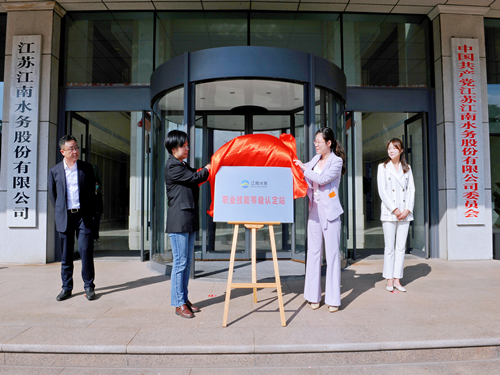 江陰市人力資源和社會保障局黨委委員、副局長居琳,江陰市總工會副主席張艷,江陰市公用事業服務中心副主任張琦受邀參加儀式。儀式由公司副總經理高立主持,公司黨委副書記、總經理池永致辭,居琳和張艷共同為江南水務職業技能等級認定站揭牌。